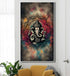 A striking depiction of Lord Ganesha is centered within an intricate and colorful mandala pattern. The detailed linework of the mandala, combined with vibrant washes of color, creates a sense of spiritual energy radiating outwards. Ganesha is portrayed with a serene expression, holding symbolic items and offering a blessing. The artwork beautifully blends the iconic imagery of the deity with the meditative symmetry of the mandala.