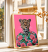 A confident leopard is featured, wearing a striking floral-print shirt on a bright pink backdrop. The contrast between the animal's natural wildness and the fashionable, playful outfit makes for a uniquely charming image. This artwork is a fantastic fusion of style and personality, and it's an excellent way to add a bold and memorable touch to any contemporary space.