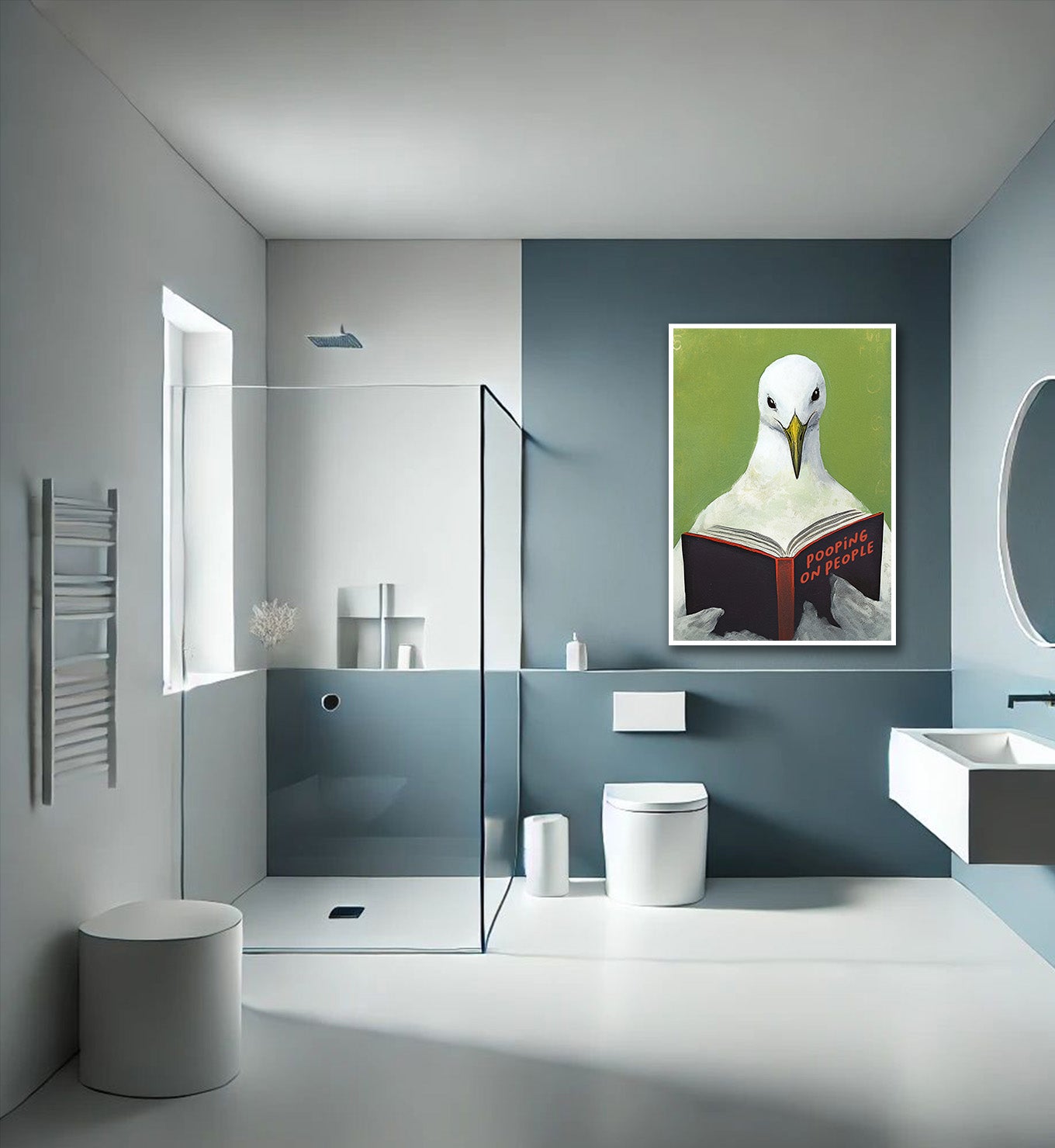 Add a splash of unexpected humor and cleverness to your home with this delightful and quirky artwork! This piece is a fantastic conversation starter, showcasing a playful take on everyday observations. Its bold colors and humorous subject matter make it a perfect fit for anyone who loves art with a unique personality and a dash of wit. Imagine the smiles and chuckles this vibrant print will bring to your kitchen, bathroom, or office. It's an instant mood-lifter and a truly distinctive addition to your collection!