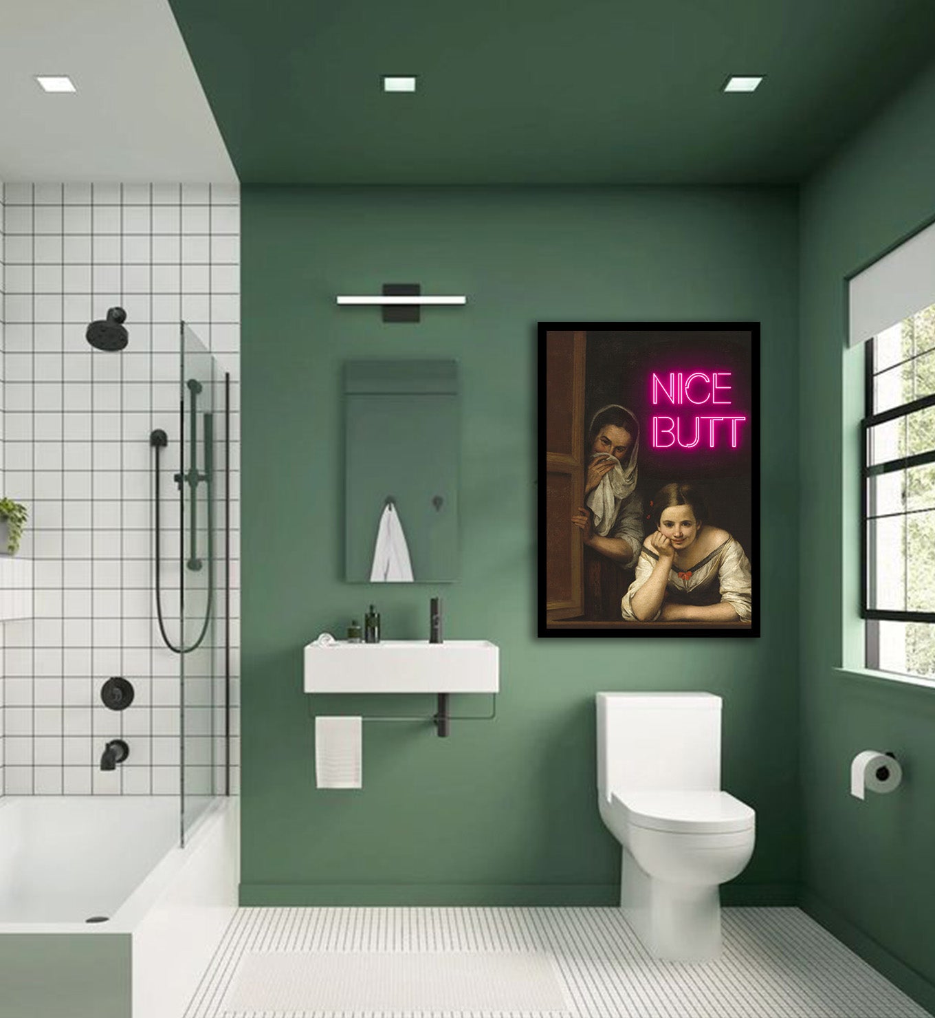 Inject a dose of cheeky charm and contemporary flair into your space with this truly unique artwork! This piece masterfully blends classic beauty with a bold, modern message, creating a captivating contrast that's both humorous and stylish. It's an absolute magnet for attention, sparking smiles and spirited conversations among all who see it. Perfect for those with a playful spirit and an eye for art that breaks the mold, this painting will add an unforgettable touch of personality to any room. Dare to display this clever and confident piece and let your walls do the talking!