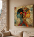 This artwork beautifully portrays the eternal connection of two souls, fused together in a single, mesmerizing image. The two profiles, one in cool blue tones and the other in warm gold, are adorned with intricate, folk-art-inspired patterns. The art's rich texture and harmonious color palette give it a soulful, timeless feel. It's a powerful symbol of love, balance, and harmony, perfect for bringing a sense of spiritual depth and connection into your home. This is more than just a picture; it’s a celebration of a profound bond that will add unique elegance to any space.