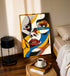 Make a definitive impression with this unforgettable face. Deconstructed into vibrant shapes and a primary color palette, the image projects an electrifying energy. It is an incredible centerpiece for an interior with up-to-date style, reflecting a love for forward-thinking design. This arrangement is guaranteed to captivate attention and establish an unmistakably cool atmosphere in your home.