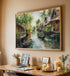 Step into the heart of a lively riverside community with this vibrant artwork. The scene captures a bustling waterway, where several boats are moored between rustic wooden homes and lush palm trees. The feeling of life and activity is strong, suggesting the daily rhythm of a unique community built right on the water. The rich, textured colors bring the scene to life, from the earthy browns of the houses to the bright, energetic greens of the foliage. This artwork is a fantastic gateway to a world of simple, beautiful daily life, and it will bring a sense of adventure and warmth to your home.