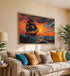 Transform your space with the dramatic beauty of "Sunset Voyager." This striking artwork captures a tall ship sailing across the open sea under a fiery sunset. The bold and vibrant colors of the sky—ranging from deep red and orange to soft gold—create a powerful contrast with the deep blue of the ocean and the dark silhouette of the ship. The dynamic brushstrokes and lively feel of this piece give it an energetic yet serene quality. It's an ideal choice for anyone looking to bring a sense of adventure, freedom, and bold color into their home. A truly stunning statement piece that will captivate all who see it.