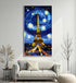 A stunning, impressionistic artwork showcasing the Eiffel Tower under a dramatically swirling, deep blue sky reminiscent of Van Gogh's 'Starry Night.' The thick, impasto brushwork brings a tangible texture to the glowing yellow tower and the surrounding Parisian lights. This piece beautifully merges a global landmark with iconic artistic genius. Acquire this mesmerizing, textured artwork to bring the romantic drama of Paris and classic art into your space.