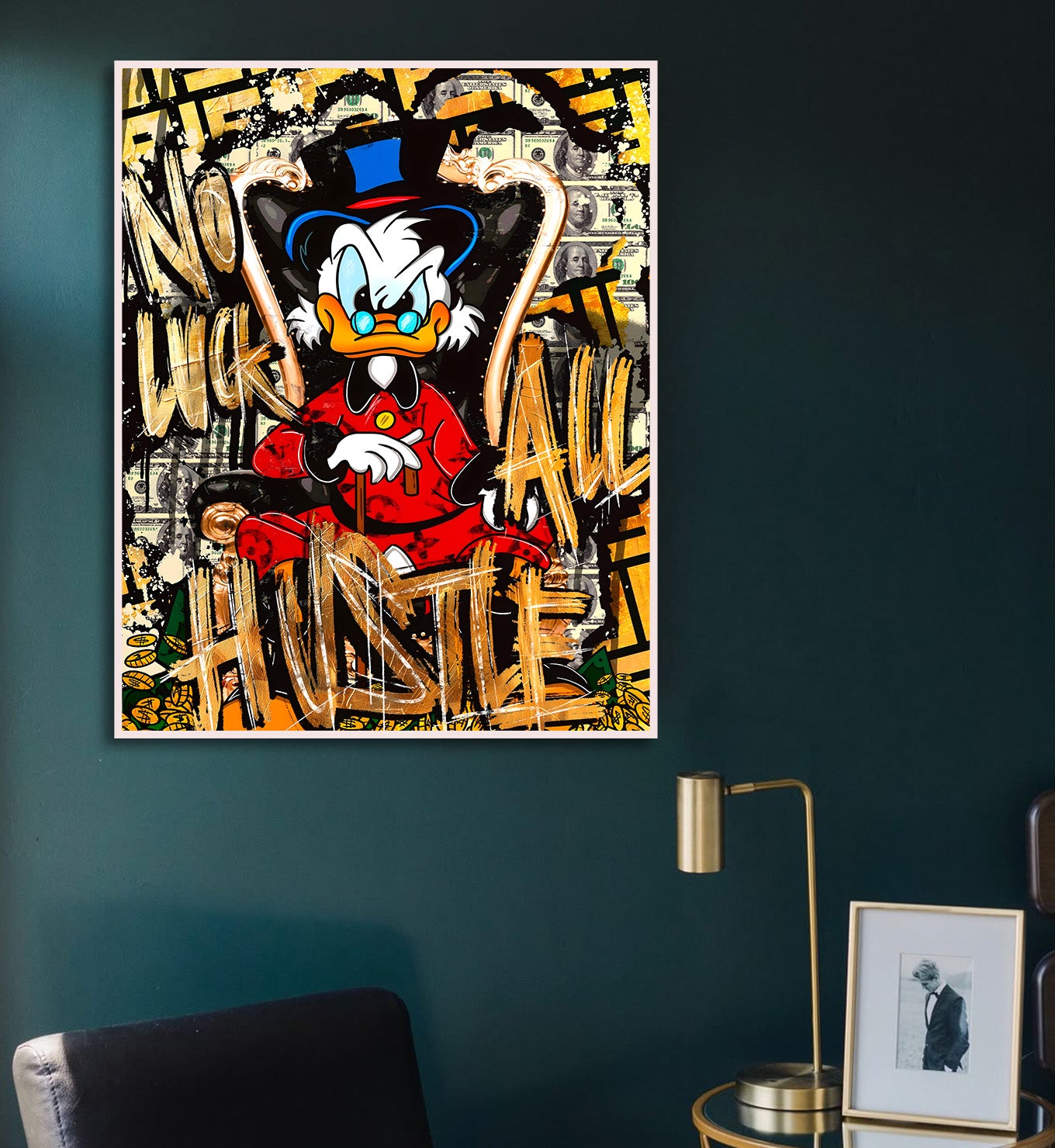 Step into a world where ambition meets luxury with this captivating artwork. This piece showcases the ultimate symbol of wealth and power, sitting proudly amidst a golden shower of success. It’s perfect for anyone who appreciates the finer things in life and believes in the pursuit of greatness. Imagine this striking visual commanding attention in your living room or office, inspiring grand aspirations and celebrating every achievement. It's more than just a picture; it's an emblem of prosperity and a stylish declaration of your own journey to the top. Make a bold statement and elevate your space with this magnificent and meaningful piece!