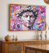 This painting is a truly electric mix of old-world art and new-school style. It takes the famous, classic bust of David and remakes it with a bold, rebellious spirit. Against a background of vibrant, energetic pink, the white marble of the statue is splattered with a joyful explosion of colors and street art tags. It's a collision of history and the here and now.