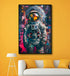 An astronaut stands stoically, his suit illuminated by a chaotic, vibrant explosion of neon pink, red, and blue street art. The helmet's visor reflects a blurry, bustling cityscape, merging the vastness of space with gritty urban life. This piece beautifully captures the futuristic theme of exploration and human connection to the metropolis. Acquire this dynamic, visually arresting artwork to bring cutting-edge style and profound depth to your collection.