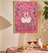 This enchanting painting celebrates a beautiful connection. Two elegant white swans form a heart with their necks, surrounded by a vibrant field of whimsical plants and tiny hearts. The playful pink background and charming details create a feeling of pure happiness and heartfelt romance. It’s a joyful and touching piece that reminds us of the power of love.