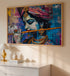 A stunning portrait of Krishna, rendered in a beautiful blend of traditional and contemporary styles. The art combines rich blues and purples with gold and pink accents, giving it a dreamlike quality. His intricate jewelry and tranquil expression are a feast for the eyes, while the textured background and layered text add a sense of depth and history. This artwork is a celebration of spiritual grace and artistic beauty. It brings a peaceful yet powerful presence to any space, making it a perfect piece for anyone looking to add a touch of divine elegance and profound calm to their home.