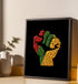 This powerful and symbolic graphic features a raised fist, a timeless symbol of solidarity and strength. The image is rendered in a unique, cracked mosaic texture and colored in the symbolic Pan-African hues of red, green, and yellow. Against a stark black background, this bold piece represents unity, resilience, and cultural pride