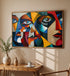 Immerse your senses in a vibrant dance of color, shape, and perception. This striking Cubist painting deconstructs the human face to explore it from multiple angles all at once. Bold geometric lines intersect with a rich and varied color palette, creating a dynamic rhythm that pulls you in. It's a fascinating puzzle of expressions and forms, offering a new discovery with every look. This is a perfect statement piece for a modern interior, designed to provoke thought and showcase a sophisticated appreciation for abstract art.