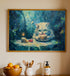 This delightful painting portrays a fluffy white cat celebrating with a small birthday cake. The cat's big green eyes look directly at you while a single candle glows on the table. The scene is set in a dreamy, blue-green forest, making it feel like a private, special moment. It's a whimsical and charming piece that will bring a smile to anyone's face.