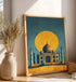 A striking and stylized portrayal of the iconic Taj Mahal stands with timeless elegance. The monument is framed by a massive, golden sun, casting a radiant glow over the entire scene. The art's simple yet powerful color palette—deep blue, earthy gold, and a touch of shadow—gives it a modern, minimalist feel. It’s a beautiful tribute to a symbol of eternal love and architectural genius. This artwork is perfect for anyone who wants to bring a piece of history and majesty into their home, offering a unique and sophisticated focal point.