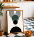 This artwork plays with shapes and lines to create a striking yet harmonious visual. A bold, black half-circle grounds the piece at the bottom, while two layered circles — one deep black, one serene forest green — float above. Overhead, a series of elegant black arches curve gracefully, giving the impression of an embrace or a rising sun. This piece brings a modern and artistic flair, perfect for adding a sophisticated touch to your living space. Its clean lines and balanced composition will draw the eye and spark conversation.