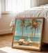 This charming painting, "Beach Cruiser," captures the timeless feeling of a perfect beach day. A classic scooter sits parked under two tall palm trees, with the sparkling blue ocean and a clear sky stretching out in the background. The scene is full of carefree relaxation and a hint of vintage style. This artwork is perfect for adding a touch of laid-back elegance and a sense of endless summer to any room. It's an ideal piece for inspiring a feeling of vacation and warmth, making your home feel like a sunny, seaside escape.