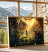 This magical image brings Snow White to life in her enchanting forest home. Dressed in her iconic blue and yellow, Snow White sits gracefully, sharing a peaceful moment with her beloved forest friends, including deer, rabbits, and squirrels. The scene is alive with glowing fireflies and soft light, capturing the timeless beauty and gentle spirit of Snow White's world.